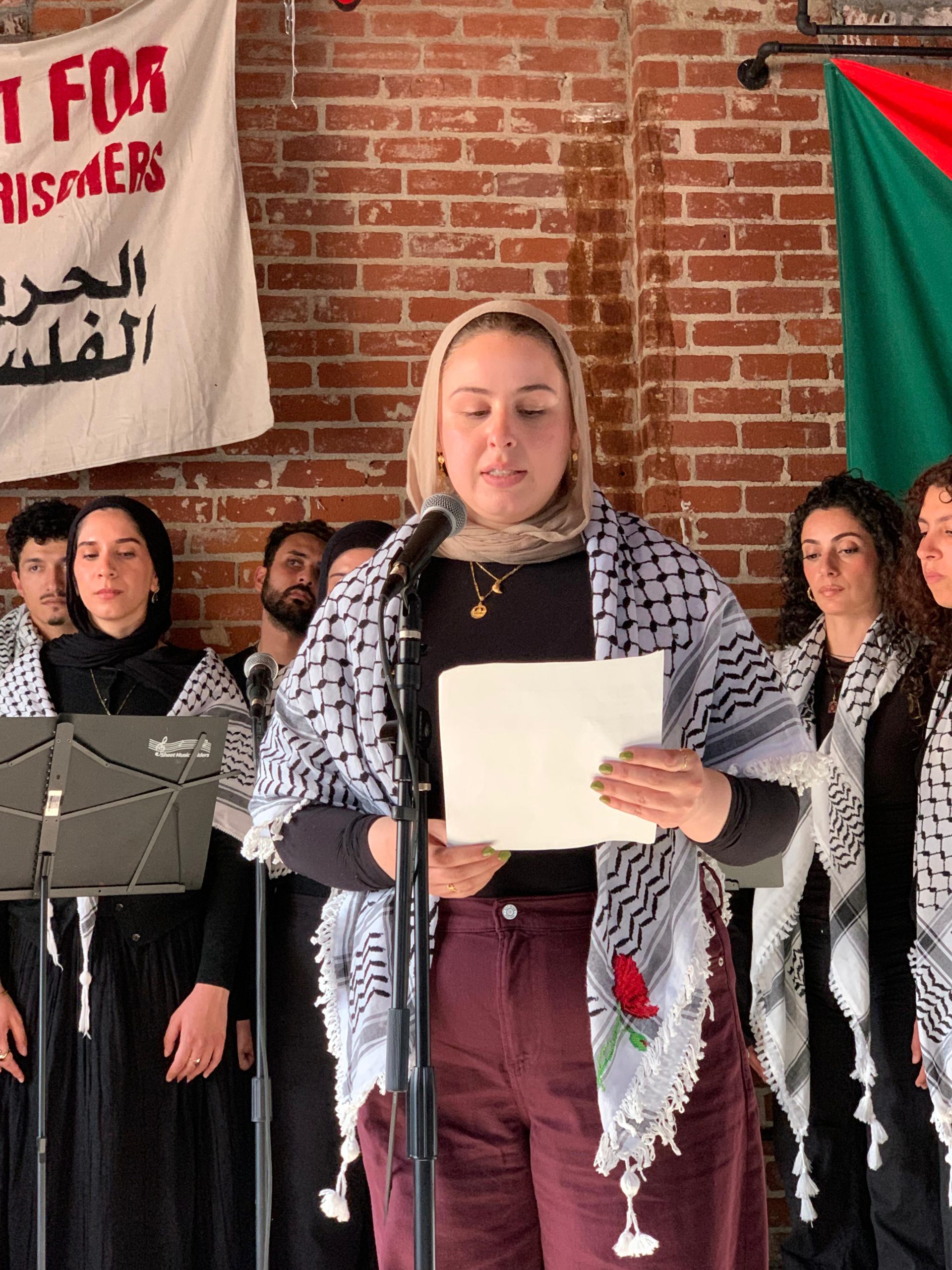 وتخللت الفعالية فقرات فنية أحياها مجموعة من حركة الشباب الفلسطيني في لوس أنجلوس، حيث وجّهوا رسالة تضامن إلى الأسرى والأسيرات من خلال أداء أغانٍ وطنية فلسطينية لامست الوجدان، من بينها: “من سجن عكا طلعت جنازة” و*“هدي يا بحر هدي طولنا في غيبتنا