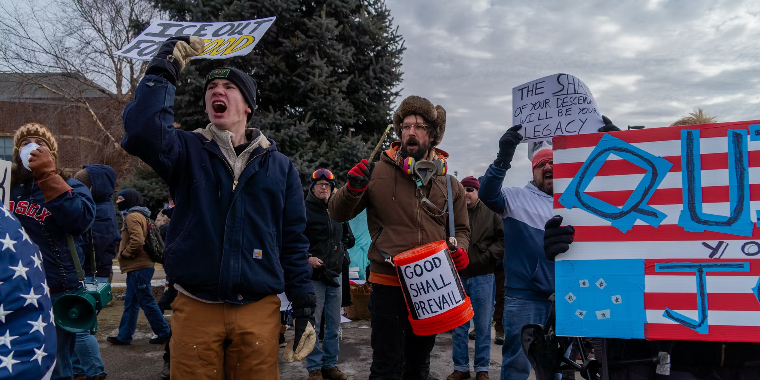 ورفع المحتجون شعارات تندد بما وصفوه بالممارسات القمعية بحق المهاجرين والعائلات، مطالبين بوقف المداهمات اليومية، وإنهاء الترحيل القسري، وسحب عناصر الهجرة من الولاية، مؤكدين أن هذه السياسات تزرع الخوف داخل المجتمعات وتستهدف الفئات الأكثر ضعفًا.