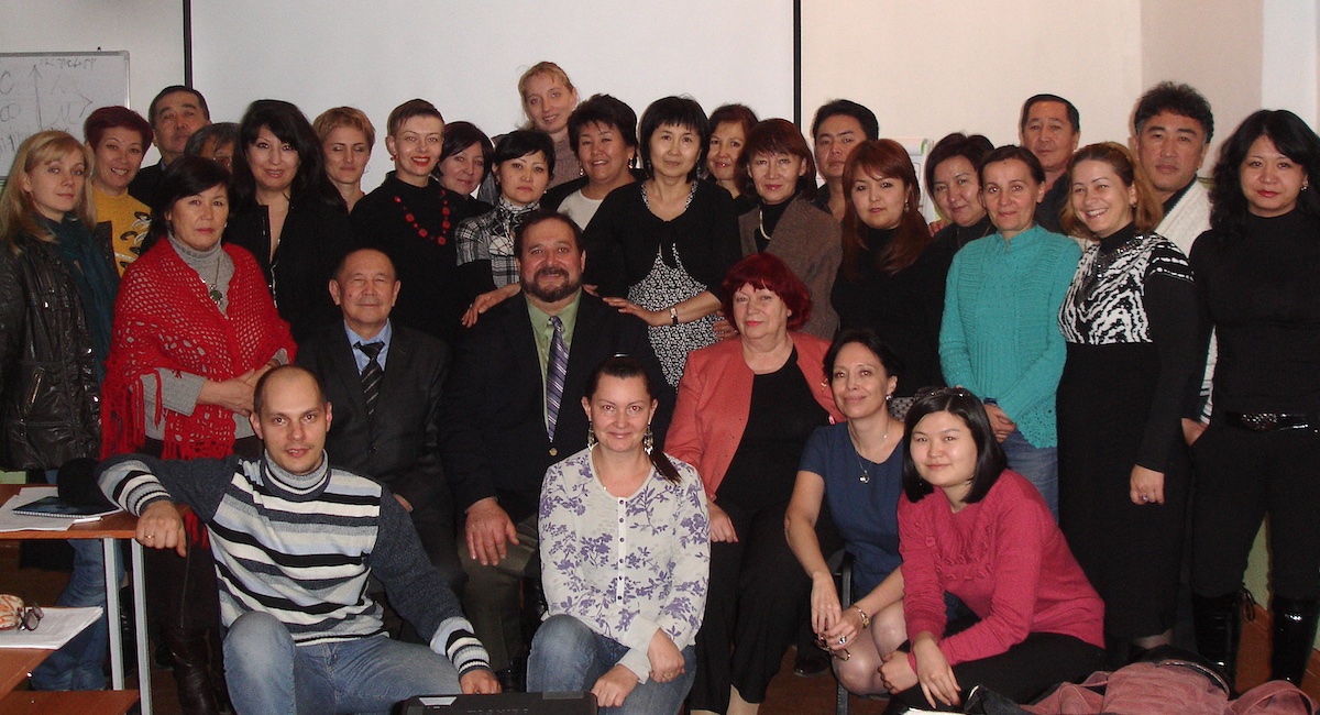 Above: Dr. Patrick Marius Koga (center, in green shirt and purple tie), pictured with members of the Kyrgyz Psychiatric Association in Bishkek, Kyrgyzstan in November 2010. The event marked the beginning of Koga’s Ulysses Project as a refugee mental health research program on the global scale.