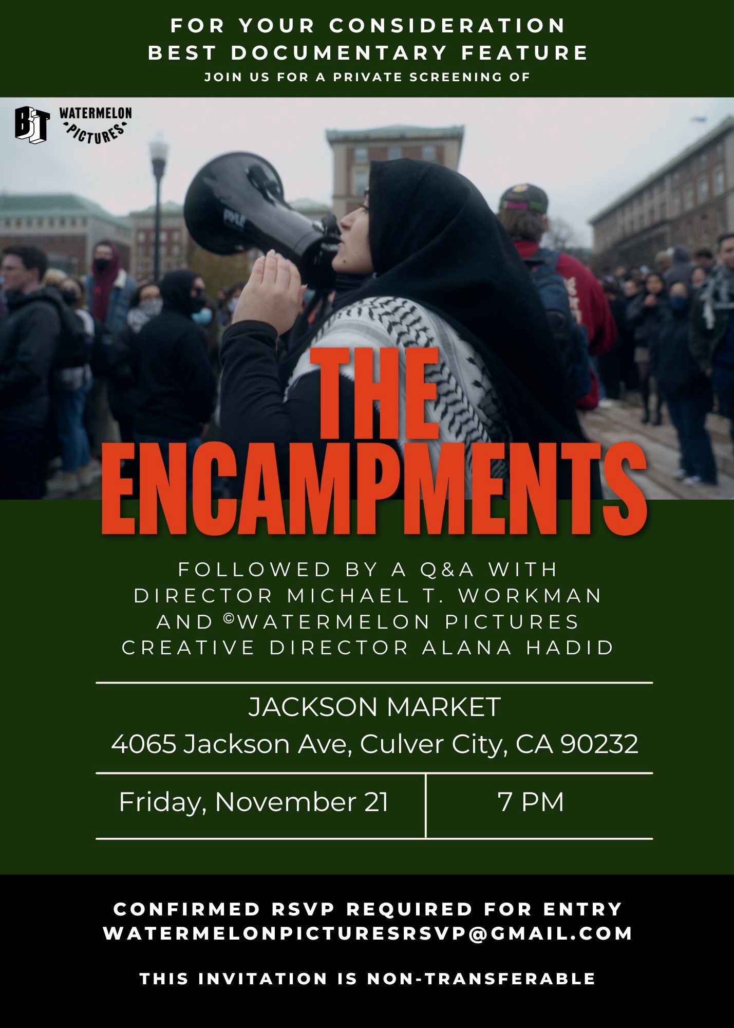 نيويورك – عُرض فيلم وثائقي جديد بعنوان “The Encampments” يسلّط الضوء على الاحتجاجات الطلابية التي شهدتها جامعة كولومبيا في نيويورك، بعد إقامة الطلاب مخيّمات تضامن مع غزة احتجاجًا على استثمارات الجامعة في شركات السلاح المرتبطة بالصراع الفلسطيني–الإسرائيلي.